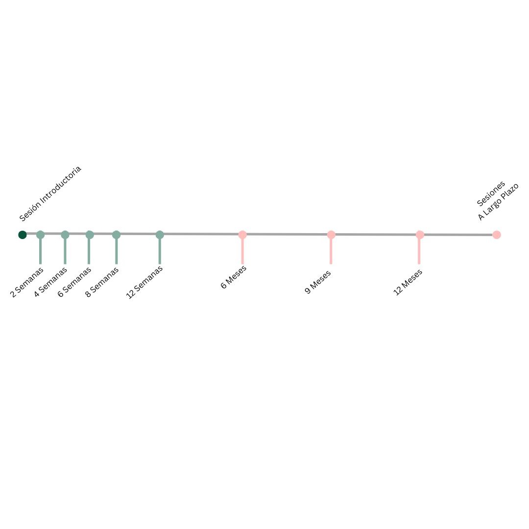 Las sesiones de seguimiento son frecuentes al comienzo del proceso de aprendizaje para construir una base de confianza al usar el sistema. El cronograma de seguimiento sugerido incluye 8 seguimientos en el primer año de aprendizaje.